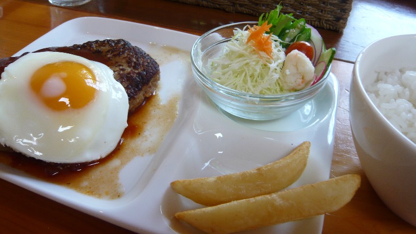ハンバーグも大きくて上には目玉焼きがのっかってて食べ応えがあり、