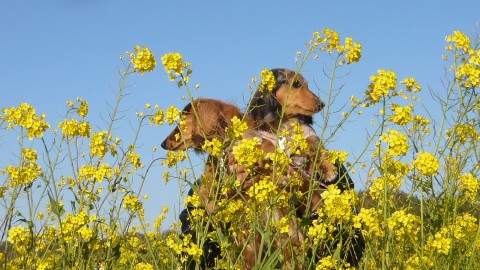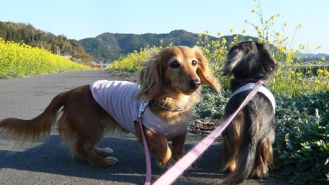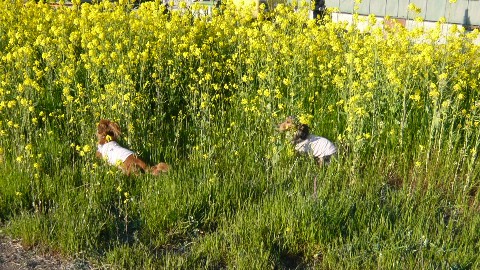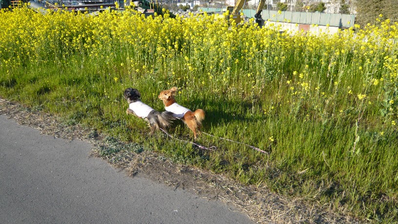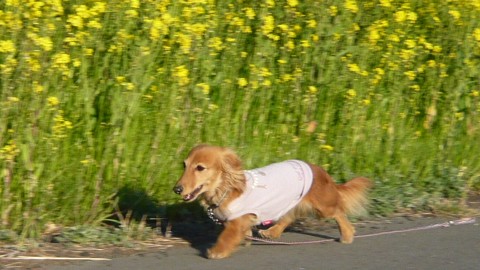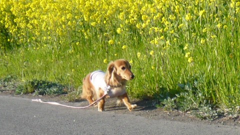 菜の花の向こう側からお顔を出したお写真が撮りたくて、我が家の住人に足して7.8キロの