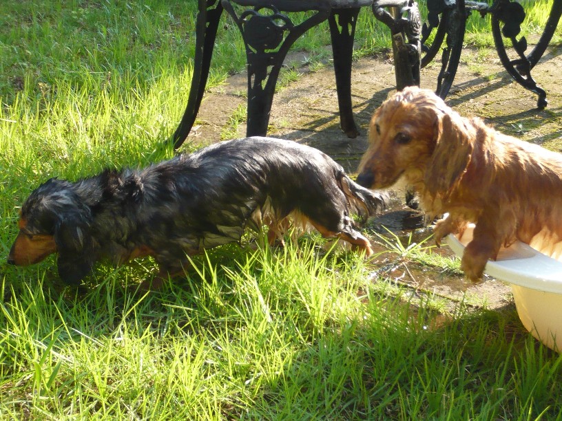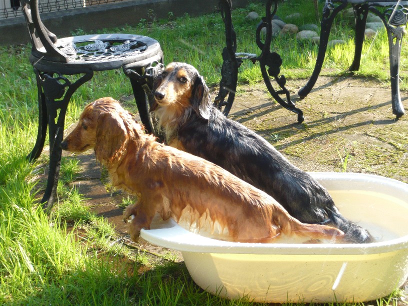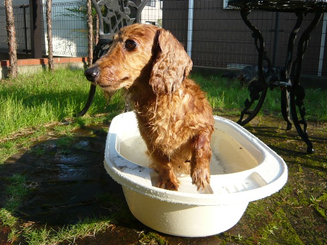 なかなか都合もつかないし、ある日の午後、ふと、お庭で水遊びしよ~って思い立ち、