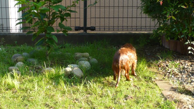 お庭でしばらく遊んだのでさすがに気がすんだようで、わたしにすんなり