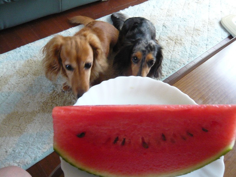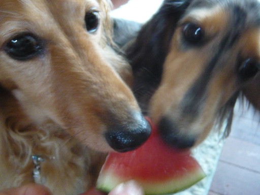 ふたりとも、おいしそうにスイカに噛り付いてました~
