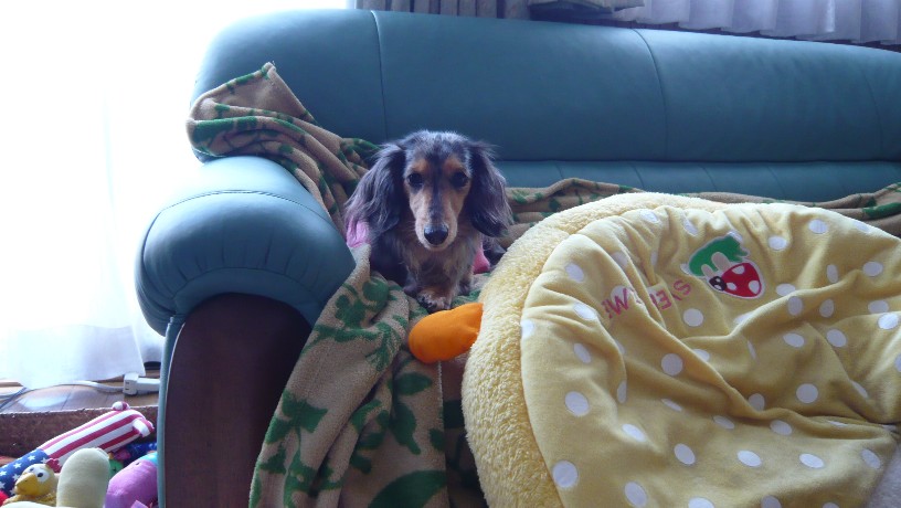 定位置のソファーの上で母子仲良くそんな元気なレアちゃんを