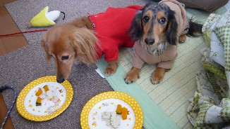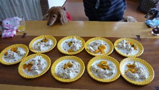 お料理上手なきょんさんはわんこたちにもごはんを作ってくれましたよ~